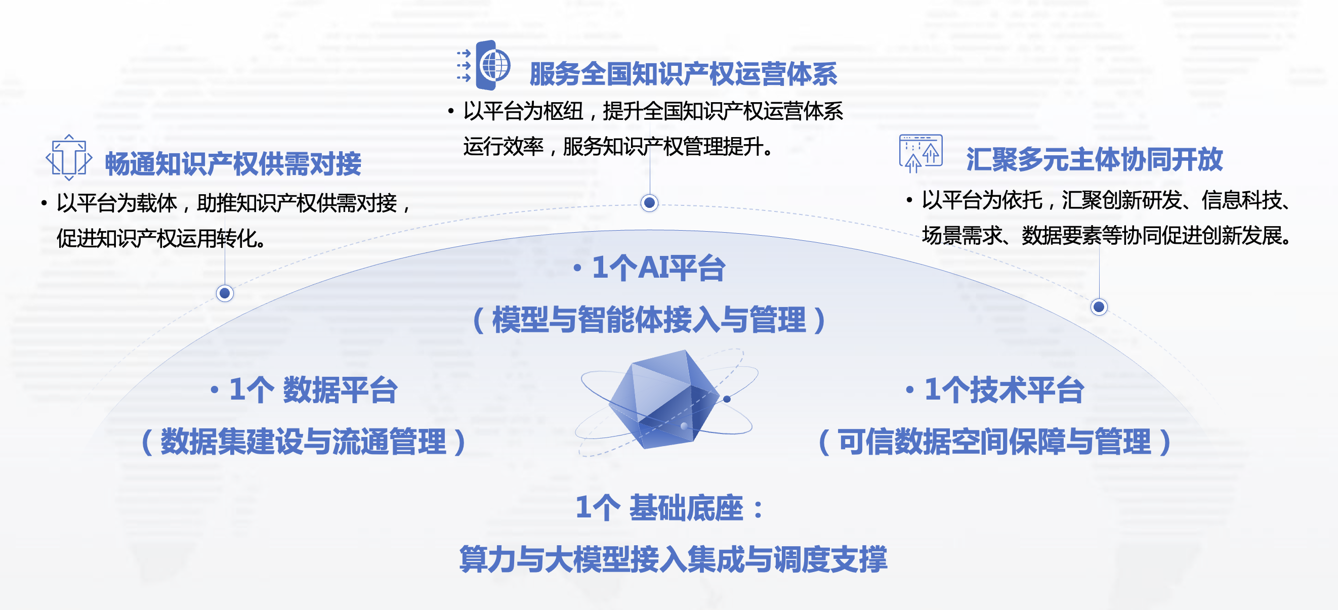 在国家知识产权局、北京市知识产权局的指导和支持下,北京电控信息服务产业平台(益泰集团)对国家平台的功能架构、运行模式、技术支撑体系进行了全面的升级规划。围绕“四个服务、四个面向”高质量、高标准开展工作:一是服务国家战略,打造面向发展新质生产力的高水平科技自立自强的政策支撑平台。二是服务运营机构,打造面向全国统一大市场的国产专利数据库汇集流通应用平台。三是服务生态伙伴,打造面向业务场景应用的智能体应用工具集成服务支撑平台。四是服务科技产业,打造面向产业高质量发展的技术聚合与需求融通的对接转化平台。同时,以资源要素流通、AI技术体系升级、服务链接协同为导向,形成了国家平台系统升级与服务运营工作的三年行动计划:2025年,重点开展制度、框架和后台架构的设计升级;2026年,筑牢基础底座和AI支撑、提升资源和服务承载能力;2027年,着力优化模式机制、促进优势互补、打造协同生态。