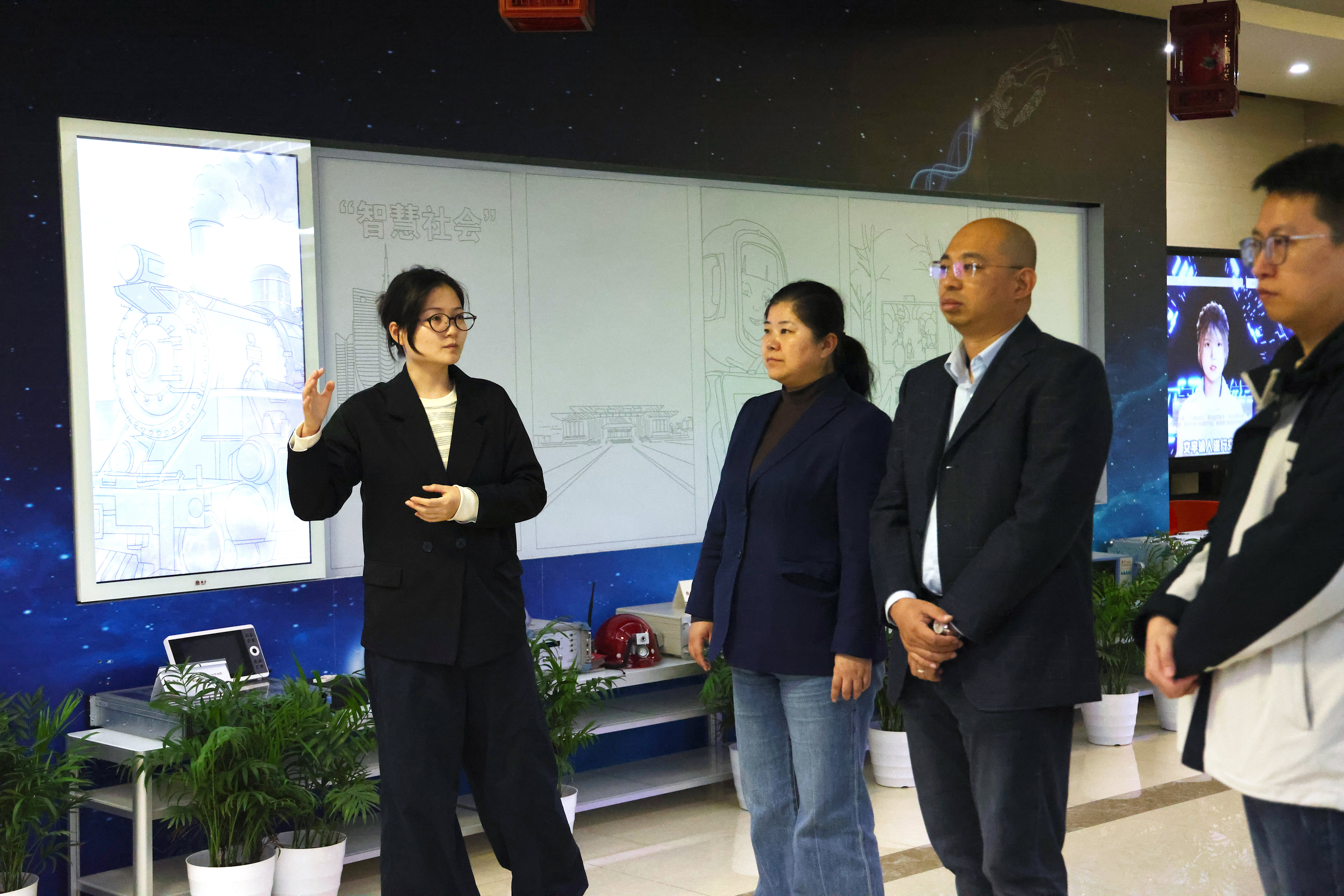 石家庄数据资产公司一行首先参观了IMS全球数据中心、C-POP剧场、AR/VR工程实验室、元宇宙巴士、体验中心等展厅,直观感受北京电控信息服务产业平台在智慧园区、科技孵化、数字化转型平台系统、虚拟人动作捕捉直播技术、元宇宙终端和解决方案、AR/VR/XR技术和数字孪生技术等领域所取得的数字化科技创新成果,以及在软件和数据服务领域所取得成就。