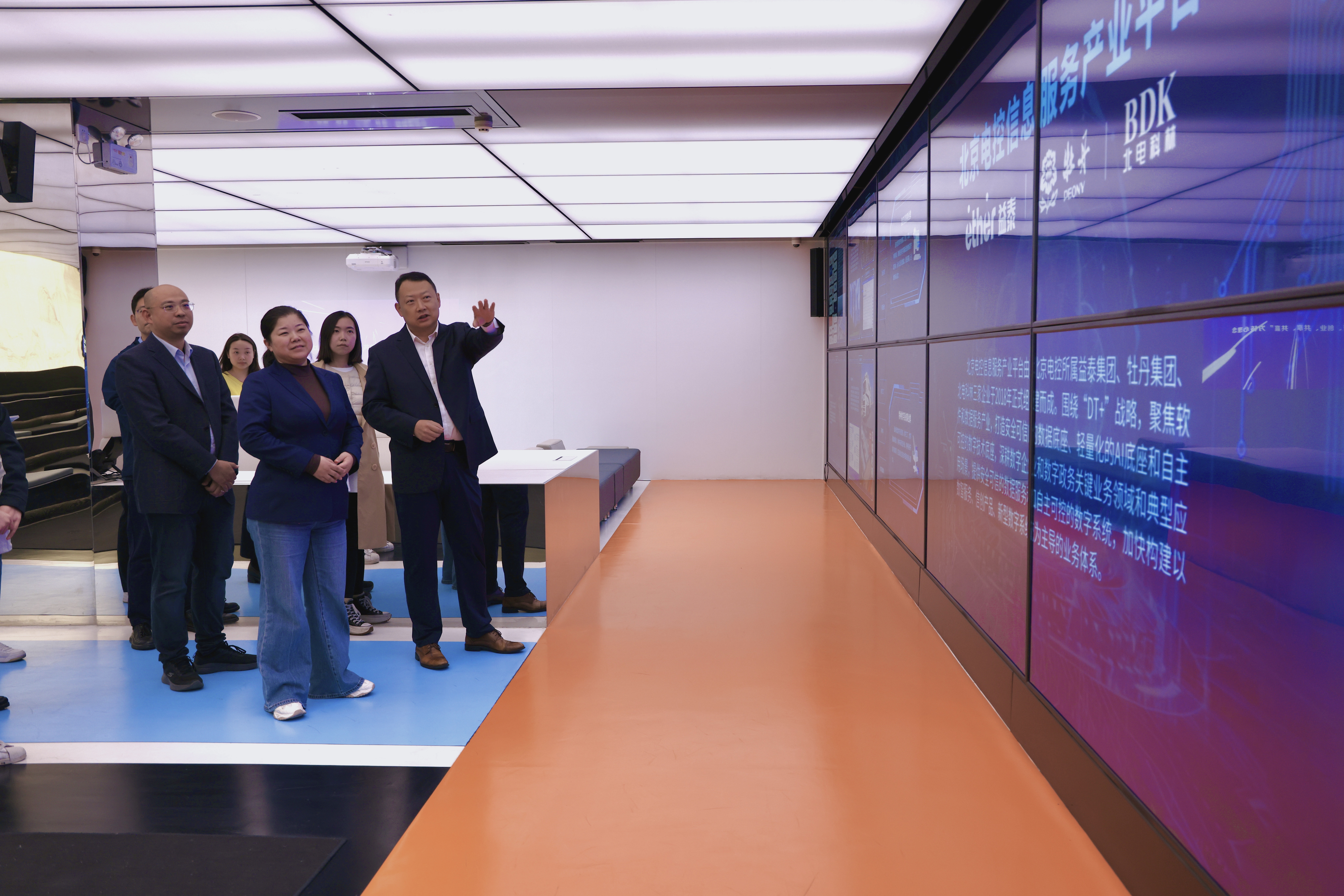 石家庄数据资产运营管理有限责任公司副董事长、总经理鲍帅、投资运营部副部长付斌陪同调研。北京电控信息服务产业平台总经理助理刘宝军,信创生态事业群总经理、牡丹集团党委副书记、总经理安涛,数智服务事业群总经理、大数据舆情中心总经理田继华、数智服务事业群副总经理、知识产权运营事业部总经理张爽等有关部门人员陪同交流。