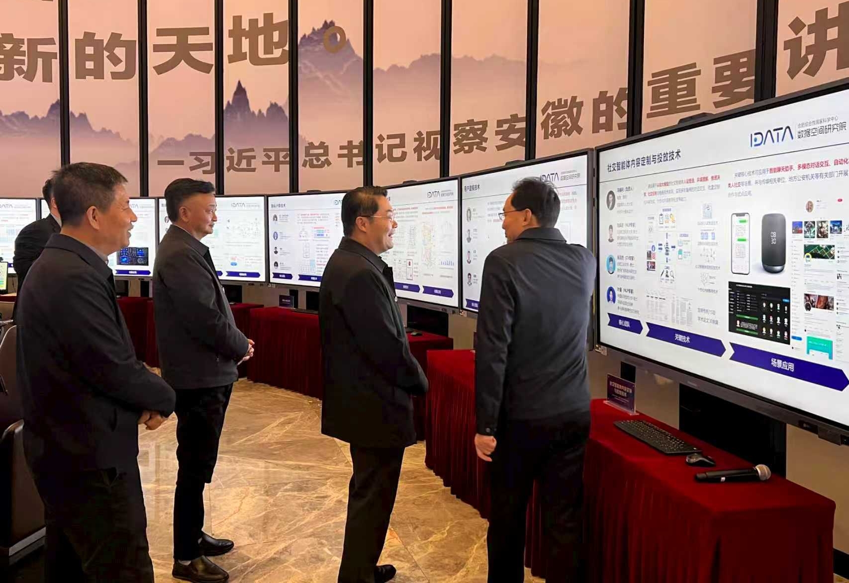 签约座谈会前,李德友一行在王佐成院长的带领下,参观了数空院展厅及认知攻防交流中心。详细了解了该院在数据要素创新与网络社会计算领域的前沿探索、技术创新、科技成果转化与产业孵化进展,以及核心技术应用场景落地案例。并于座谈会后,前往新华三数桥设备生产基地与维天运通公司进行了实地参观调研。