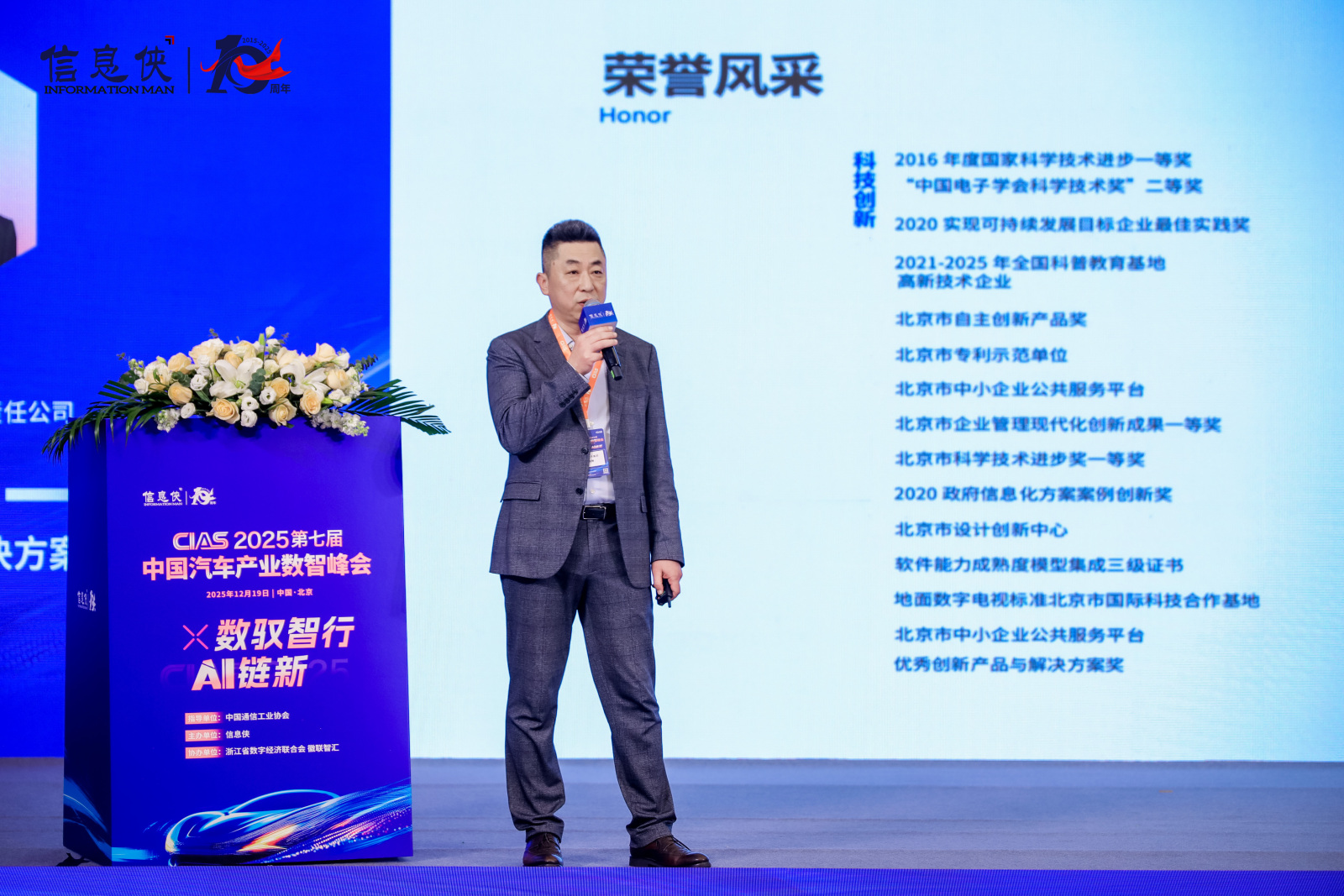 近日,第七届汽车产业数智峰会在京举行。本届大会由中国通信工业协会指导,以“数驭智行·AI链新”为核心主题。作为汽车产业链数字化、智能化转型的重要交流平台,峰会汇聚了来自整车制造、零部件、科技服务等领域220余家参会代表、120余位汽车领域专家与企业高管。北京电控信息服务产业平台受邀参加大会,北京电控信息服务产业平台市场营销中心主任、牡丹集团副总经理高翔现场做主题演讲,分享“车载广播强制标准解决方案”。